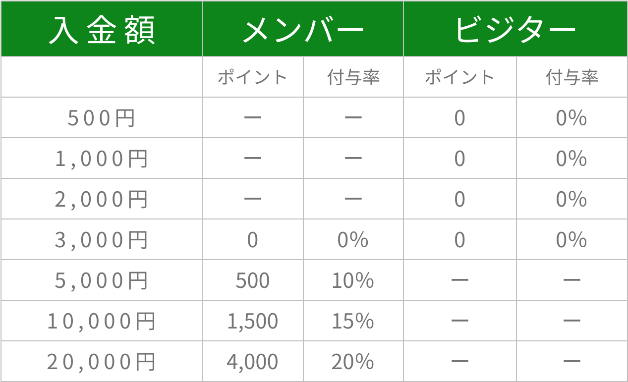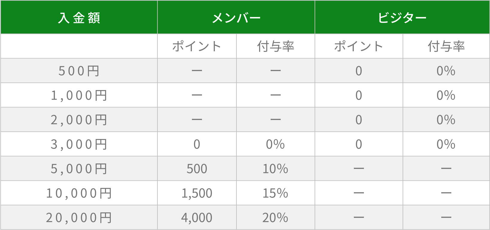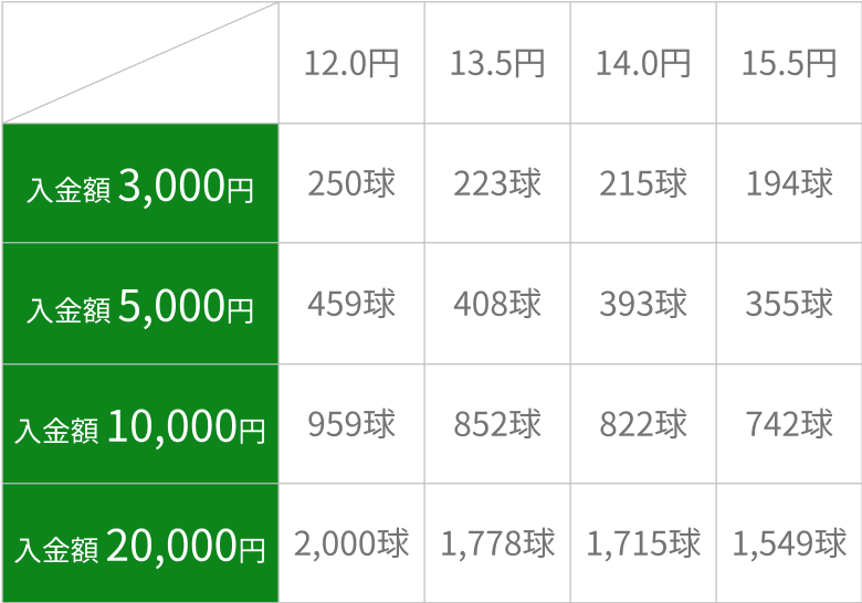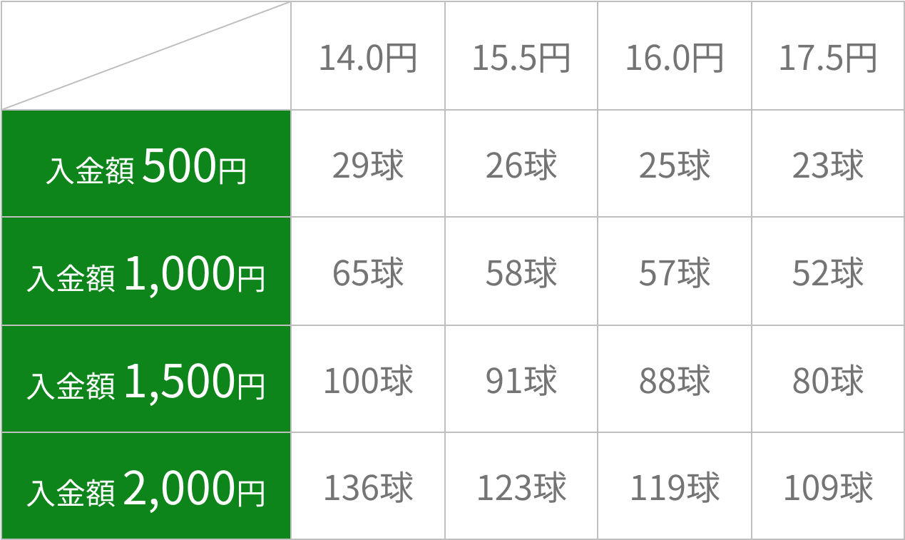 ※メンバーカードは3,000円以上からのご入金、5,000円以上でポイントが付きます。ポイントは1P=¥1でボール代として使用できます。